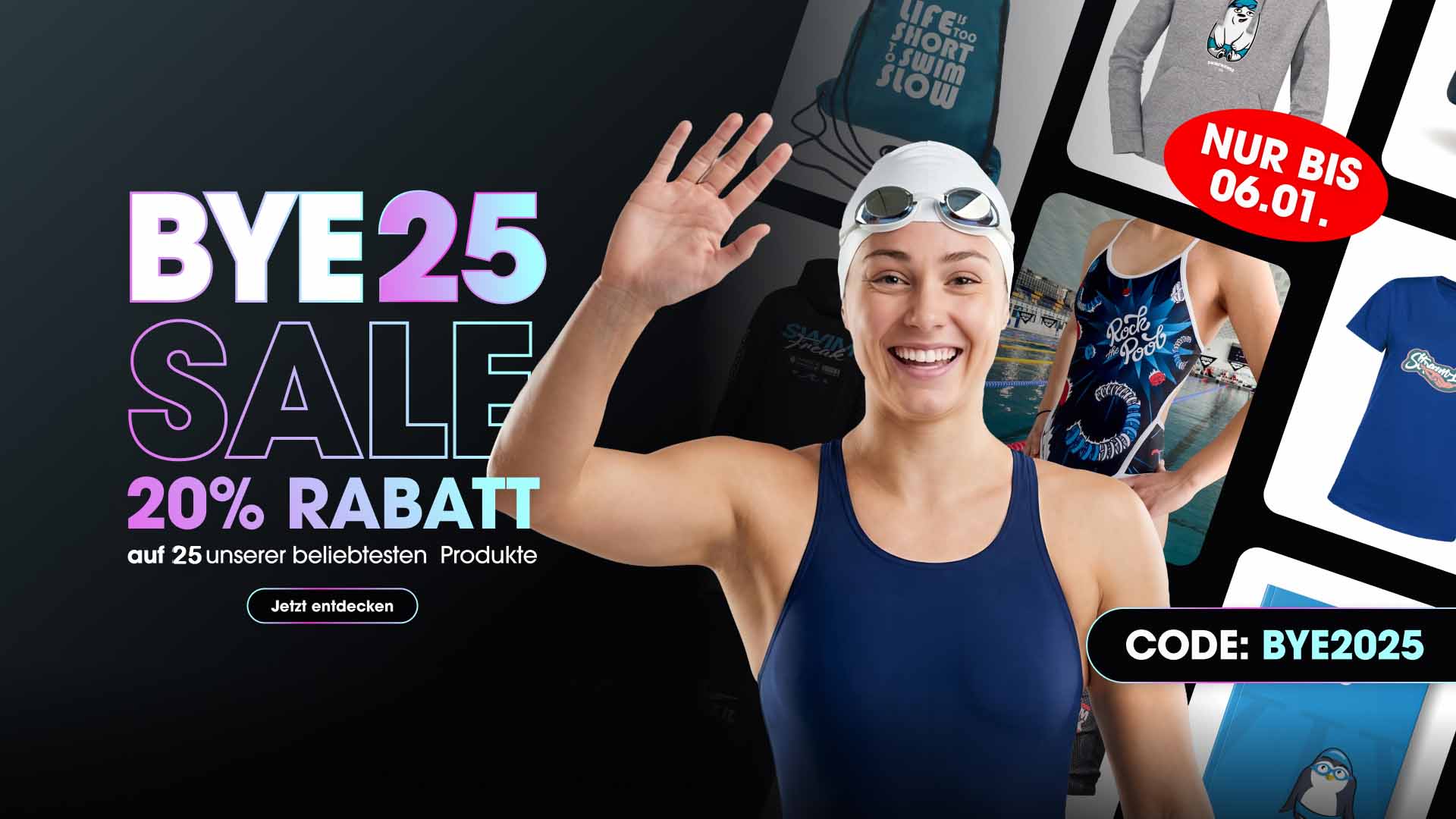 Das Jahr neigt sich dem Ende zu und es hatte für uns Schwimmfans etliche Highlights parat. Um das zu feiern, verabschieden wir das Jahr mit einem großen Sale! Ab sofort könnt ihr auf 25 Highlights satte 20% sparen!
