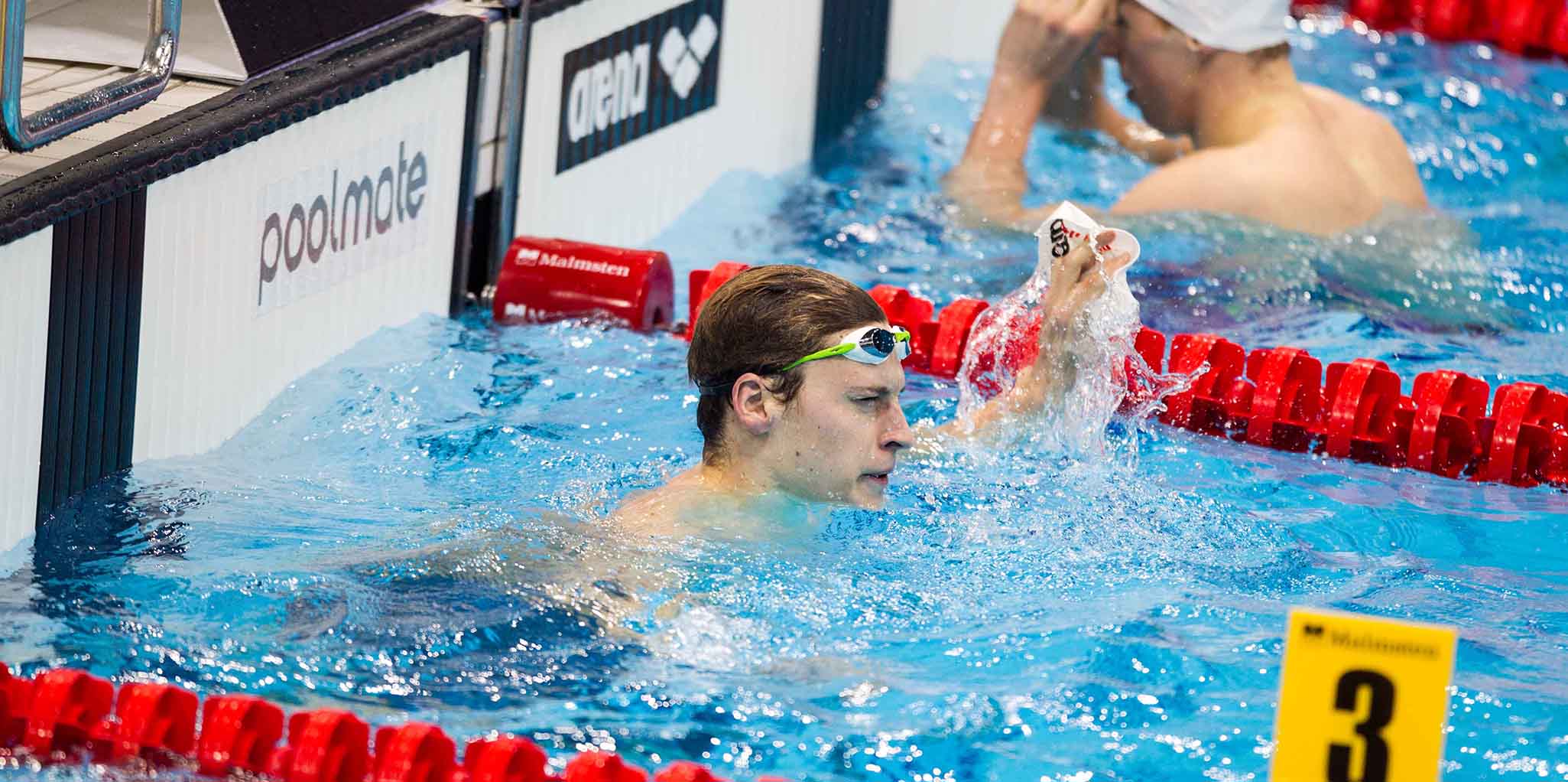 Schwimm-EM 2016: Die Finals am Dienstag (Brillenträger Velimir Stjepanovic hat Probleme die Anzeigetafel erkennen zu können)