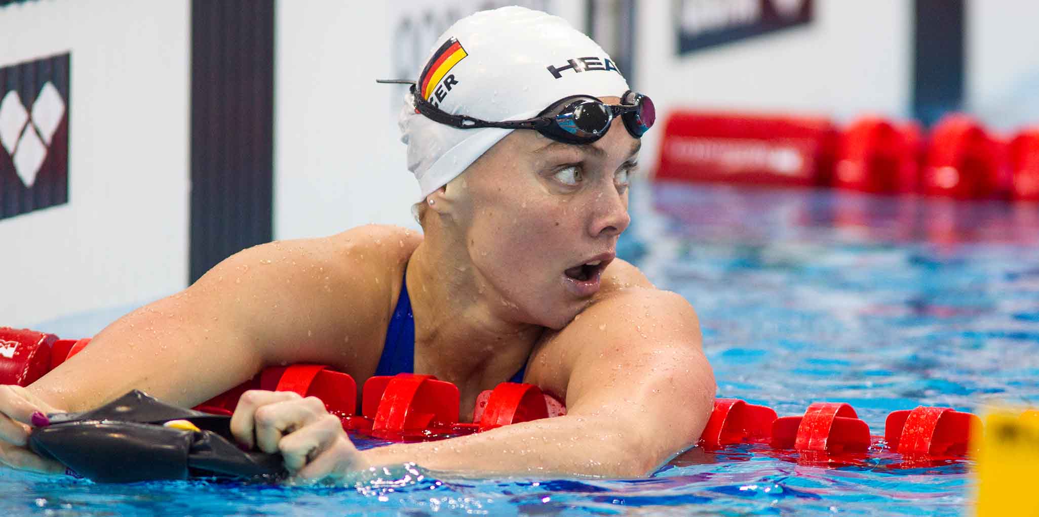 Schwimm-EM 2016: Die Vorläufe am Mittwoch (Jessica Steiger mit Blick zur Anzeige nach ihrem Anschlag über 200m Lagen)