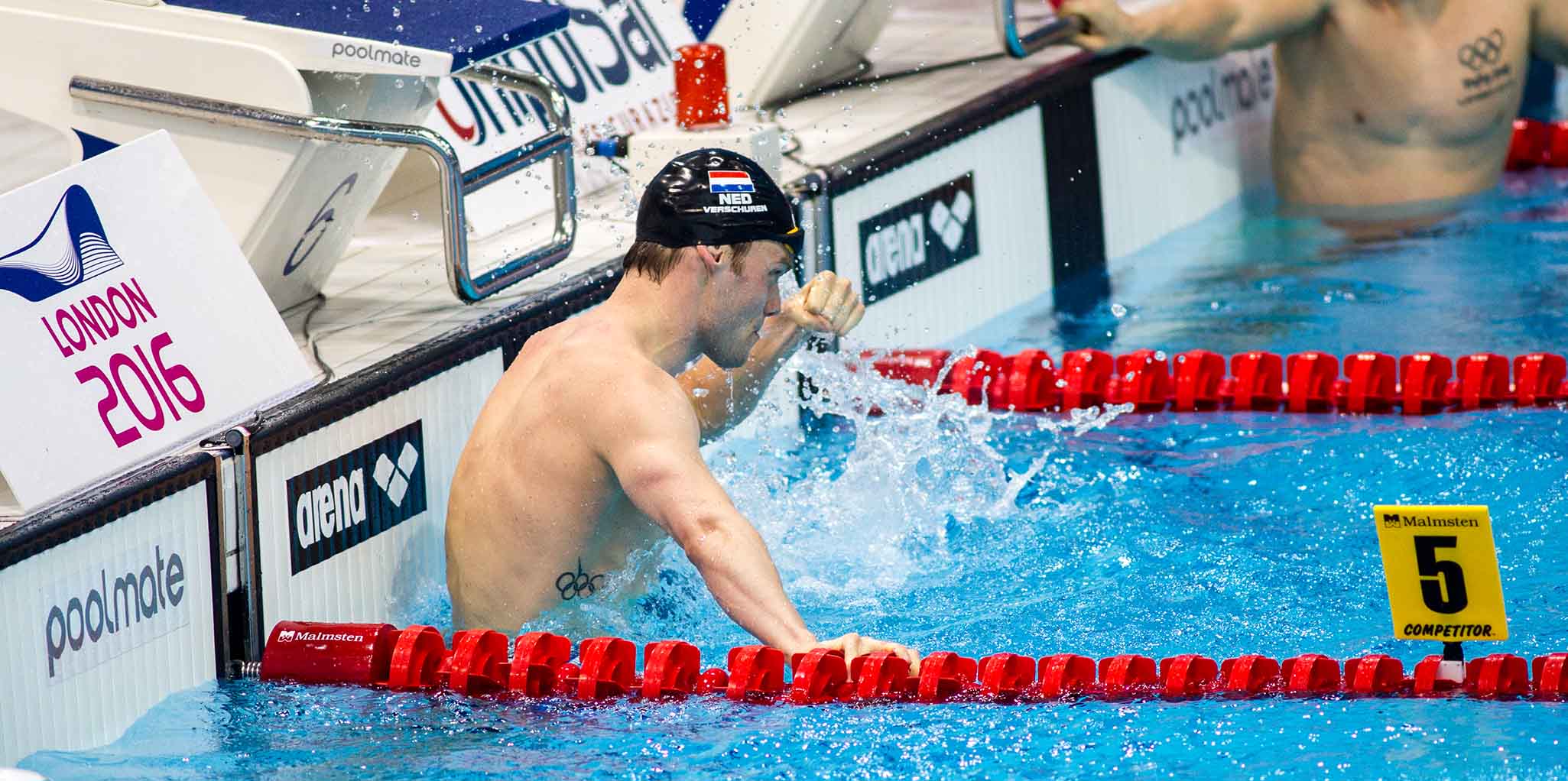 Schwimm-EM 2016: Die Finals am Freitag (Sebastiaan Verschuren freute sich nach Gold über 200m nun über die Silbermedaille hier im Aquatic Centre)