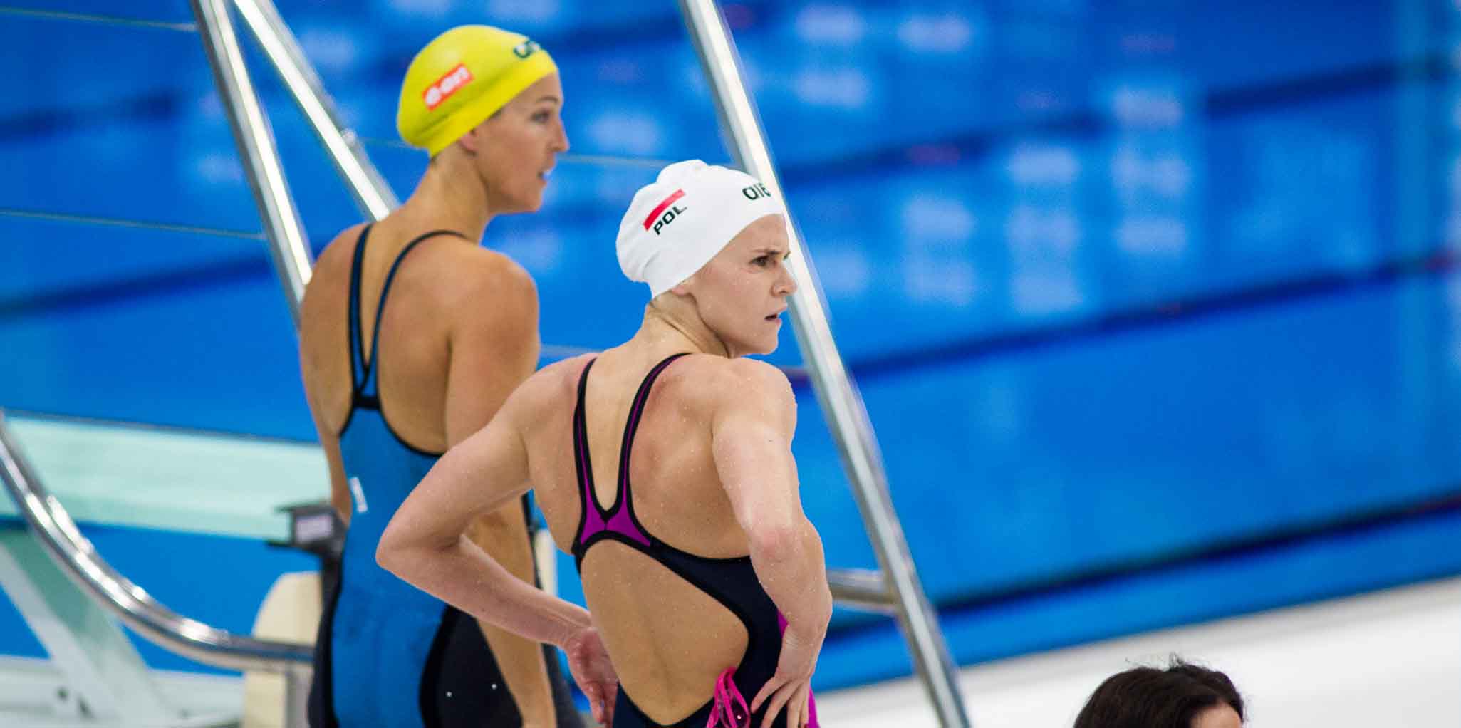 Schwimm-EM 2016: Die Finals am Samstag (Die Polin Anna Dogwiert und die schwedische Altmeisterin Therese Alshammar nach dem Halbfinale über 50m Freistil)