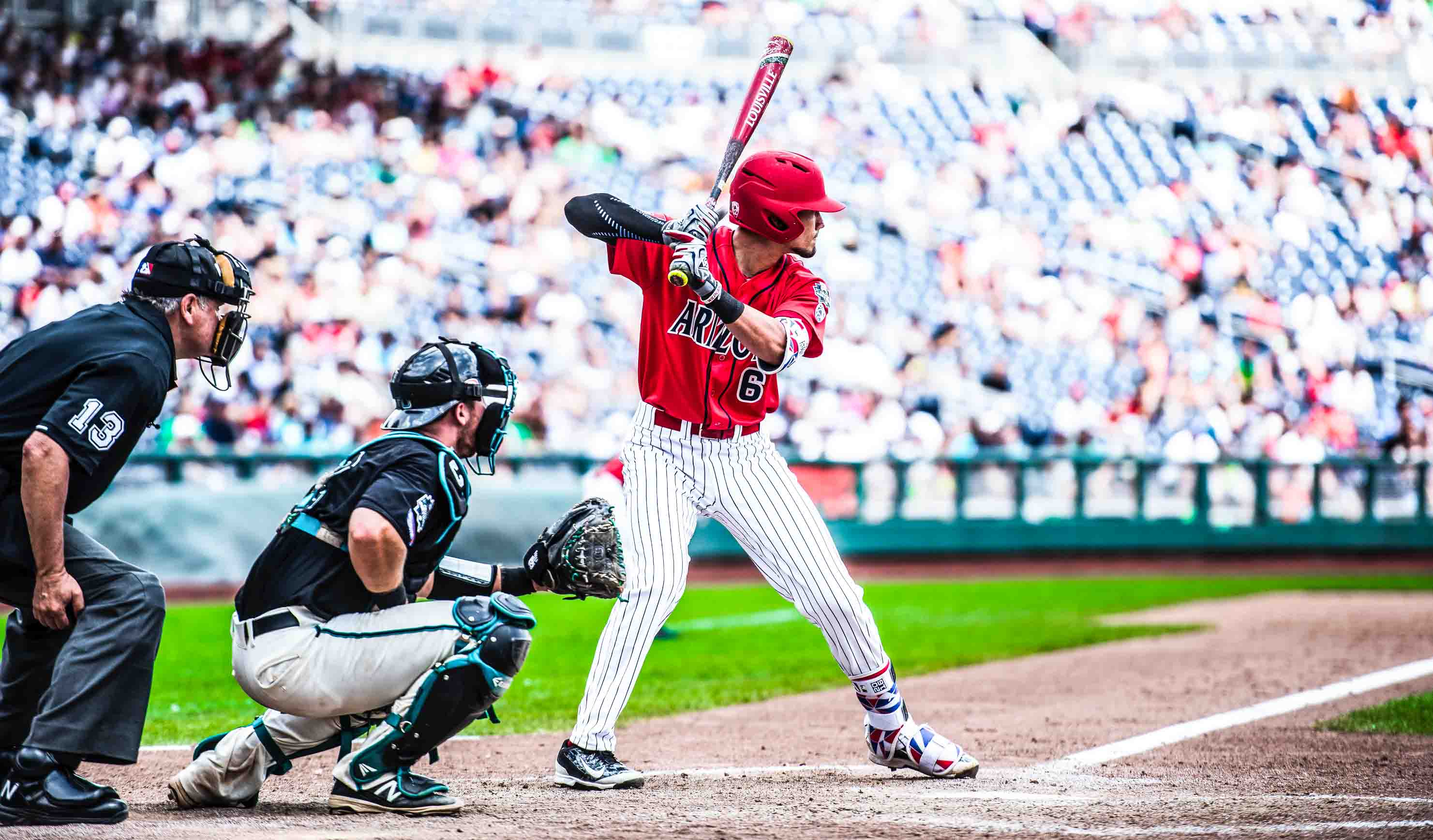Faszination US Trials: Ja, das Bild ist absichtlich in der Galerie gelandet. Neben der Schwimmarena fand im riesigen Baseball-Stadion das Finale der US College-Meisterschaft, die College World Series, statt - ein absolutes Top-Event, wegen dem die Stadt mit tausenden Studenten gefüllt war.
