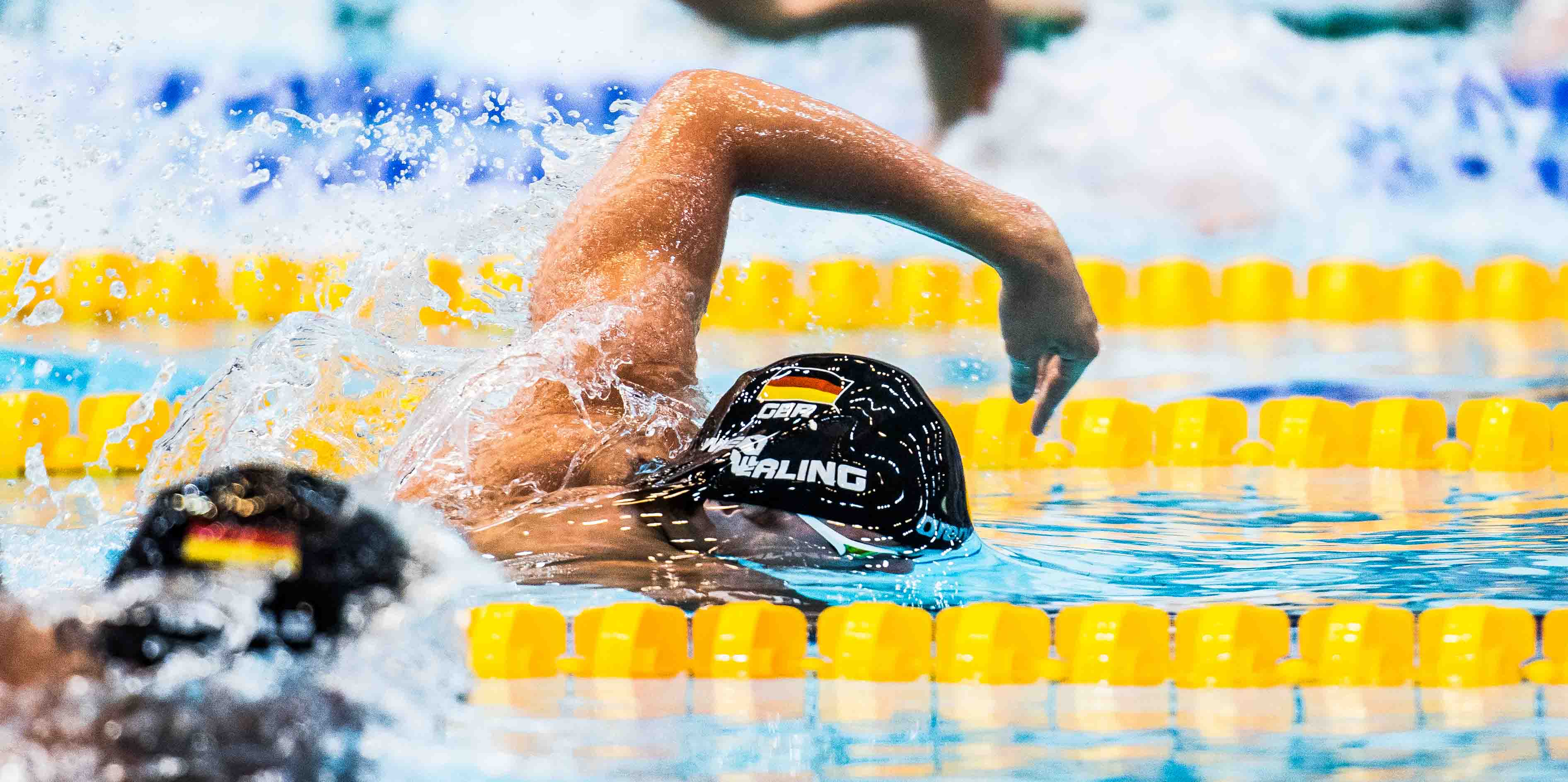 German Open 2016 - Vorläufe am Donnerstag: Damian Wierling liegt gut im Rennen für die 4x100m Freistilstaffel.