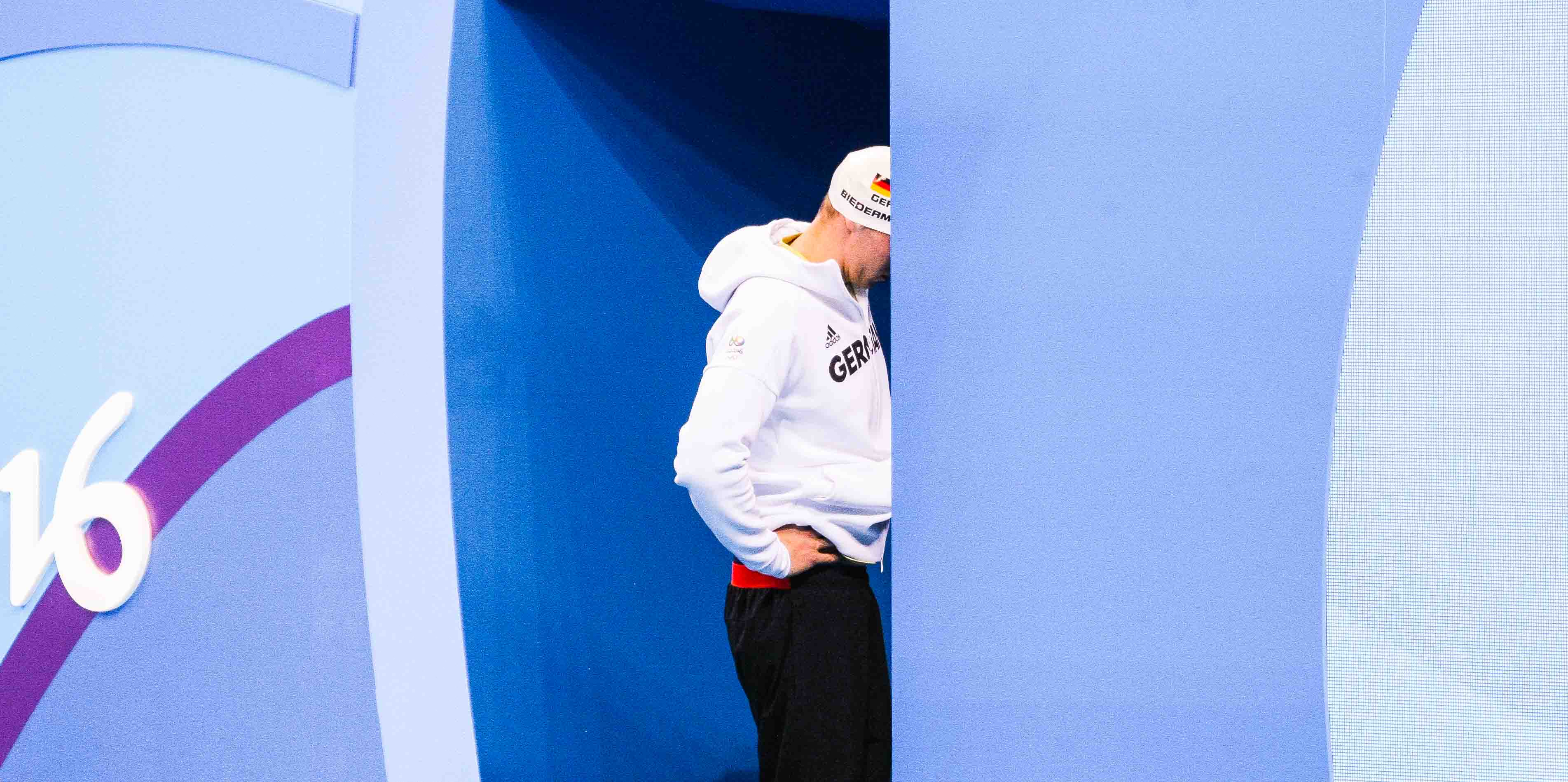 Der Weltrekordhalter wartet auf seinen Start über die 200m Freistil.