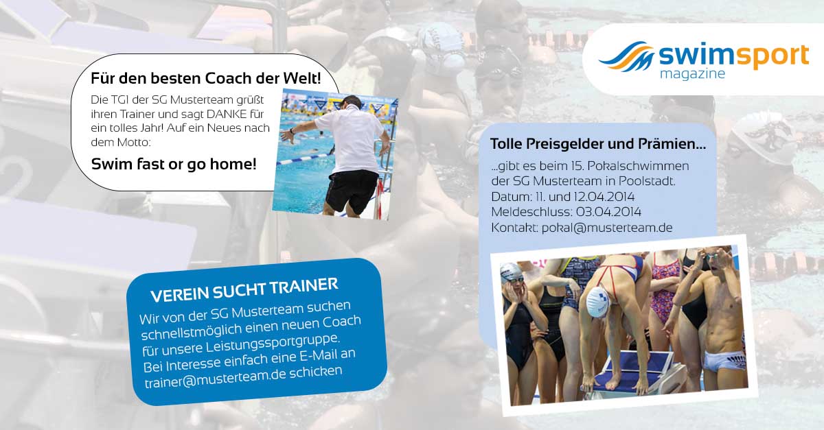 Von Trainersuche bis Grußbotschaft: Kleinanzeigen im swimsportMagazine buchen