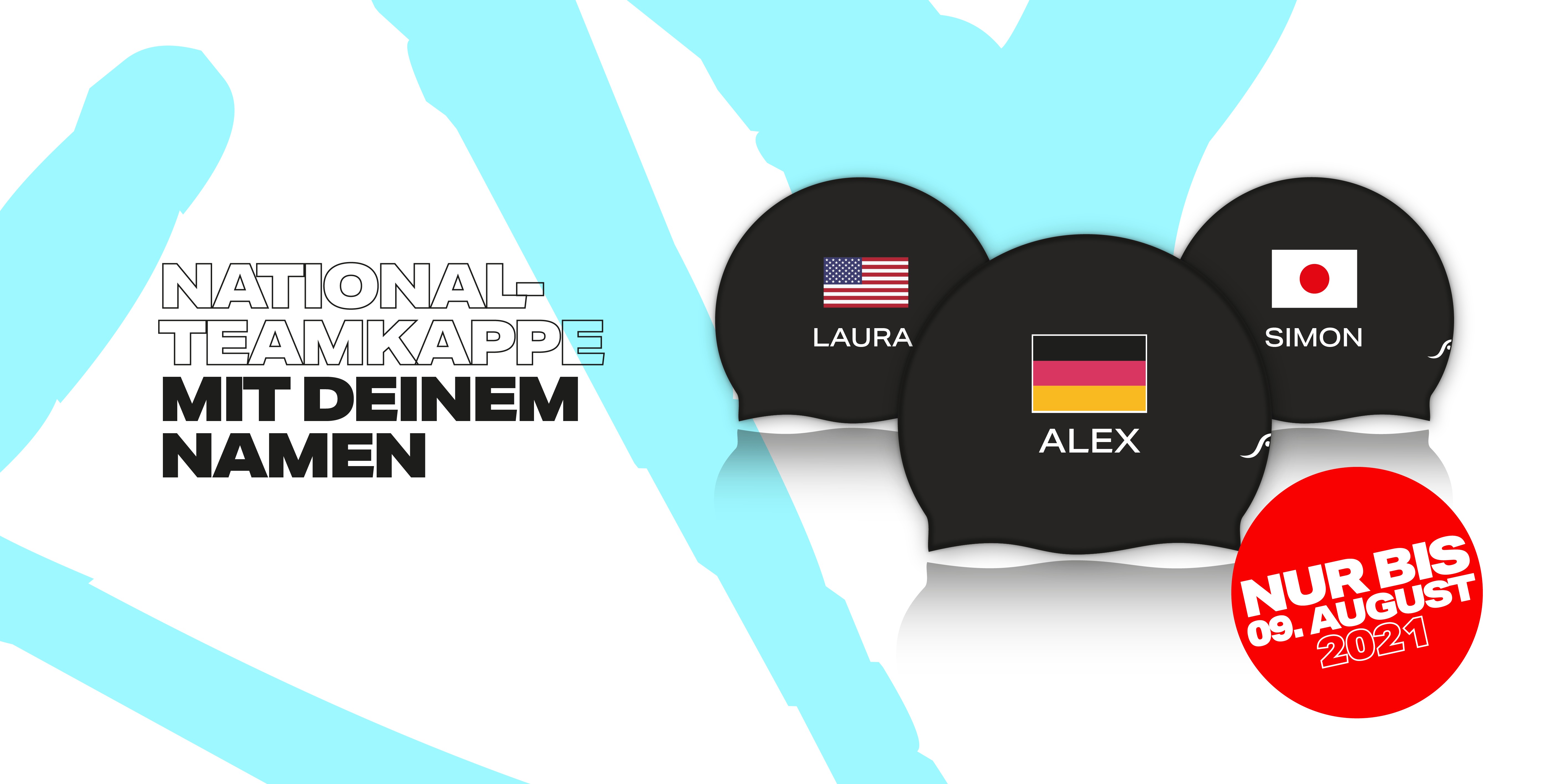 In Tokio geht es bald heiß her und auch ihr wollt auch wie die Stars mit den Nationalfarben auf der Badekappe durchs Schwimmbad pflügen?! Das machen die Swimfreaks jetzt für euch möglich! Bestellt einfach bis zum 9. August eure Nationalteam-Badekappe!