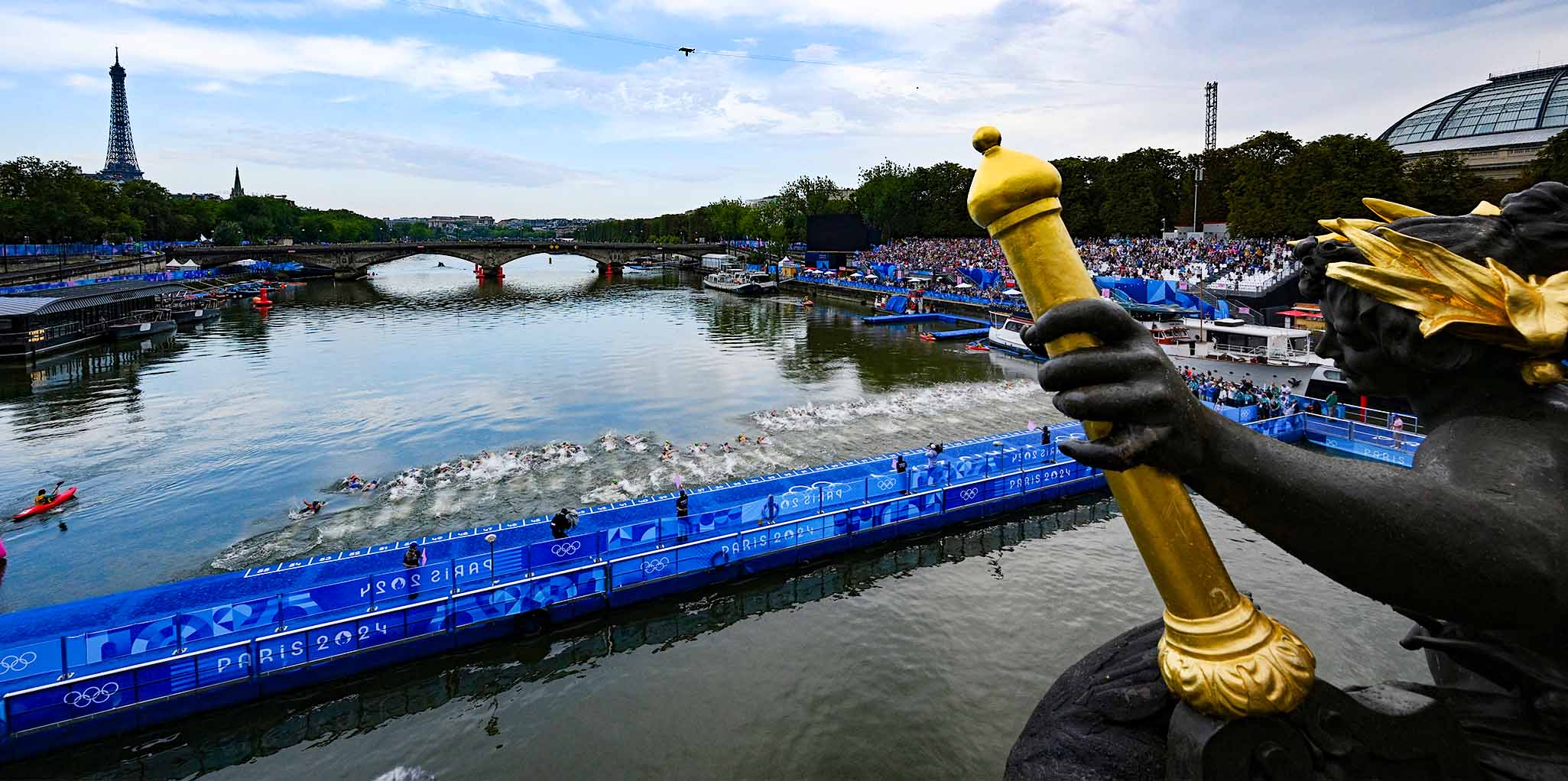 Während sich die Triathleten nur etwa 20 Minuten im Fluss aufhalten, sind die Schwimmer rund zwei Stunden im Wasser der Seine unterwegs, dass schon mit bloßem Auge keinen allzu appetitlichen Eindruck macht. So schwimmt nach wie vor auch einiges an Treibgut in der Seine, wie man vor Ort vom Ufer aus beobachten kann.