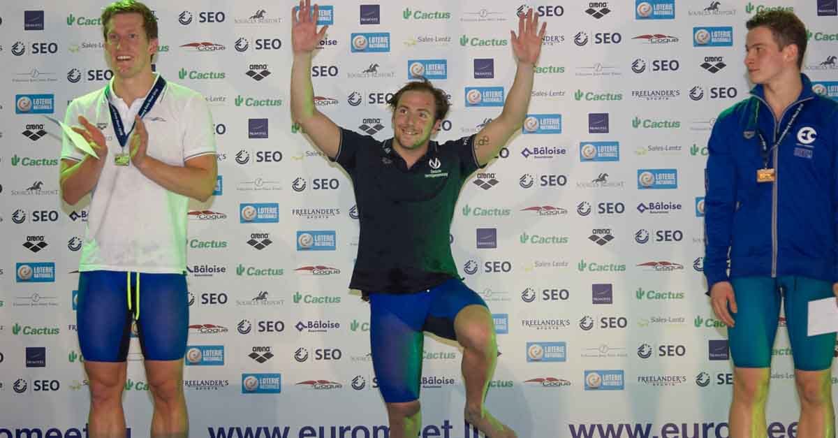 Jan Scholtz erhoffte sich von dem Wettkampf in Luxemburg nicht allzu viel, da er aufgrund zahlreicher Wettbewerbe zuvor kaum Zeit hatte, sich vorzubereiten. Doch bei seiner Spezialdisziplin Rückenschwimmen überzeugte er. Seine Kollegen vom DVAG-Juniorteam konnten das letzte Quäntchen Motivation aus ihm herauskitzeln und pushten ihn zum 5. Platz über 200 Meter Rücken im A-Finale! „Ich bin stolz darauf, es unter die zehn besten Schwimmer der Junioren geschafft zu haben. Die Unterstützung der anderen gab mir ein sehr gutes Gefühl. Das war eins meiner Highlights in Luxemburg. Der zweite Höhepunkt war definitiv das Rennen von unserem Pate Marco. Er ist ein tolles Vorbild und motiviert mich unheimlich.“
